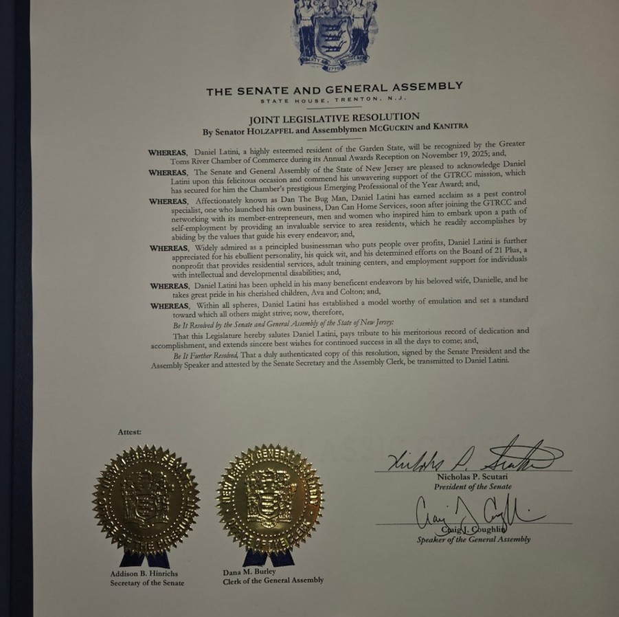 When Dan took the microphone, he shared a short, sincere story about resilience. He credited his grandfather’s advice—work harder than everyone around you and surround yourself with good people—as the foundation for building a family business with real community roots. He also thanked the chamber and local partners for helping turn a one-person dream into a growing service that Jersey Shore families and businesses can count on.